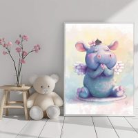 Guardian Angel Hippo Wall Art for Girls, Adorable Baby Animal Canvas Print, Nursery Decor for Kids, Baby Shower Gift